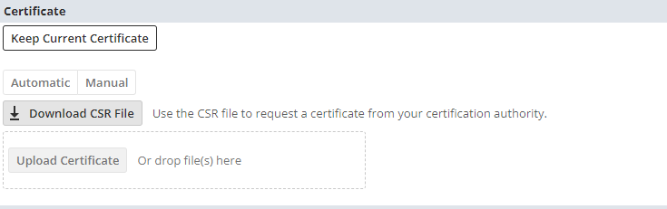 - Click on the Generate CSR File to generate a CSR file that required to submit before the generation of SSL certificates. once the CSR file is generated submit it on SSL Certificate and the respective CA will provide the SSL Certificate.