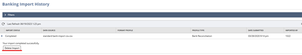 612963 – Bank Connectivity Plug In > Ability to delete Banking Import History File in NetSuite