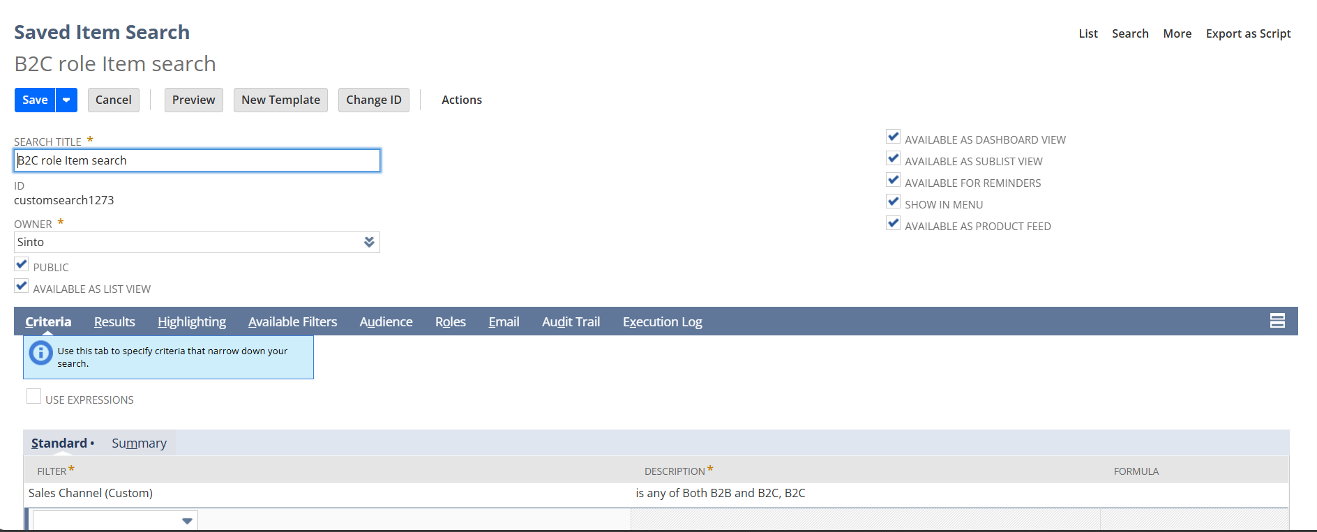 - Create and save an item search.