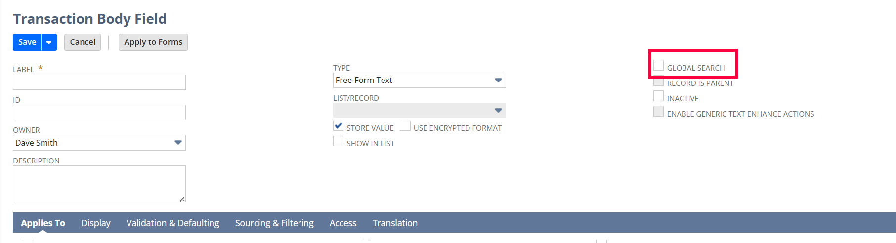 When creating a custom field for a record, there’s an option to include it in the global search. Enabling this allows the record to be found in global search results using the value entered in that custom field.