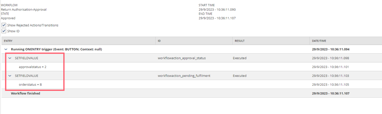 How to set the Status of Return Authorization to Pending Receipt when a custom ‘Approve’ button is clicked via Workflow.