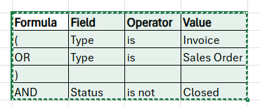 ((Type = Invoice OR Type = Sales Order) AND (Location = California OR Location = Nevada))