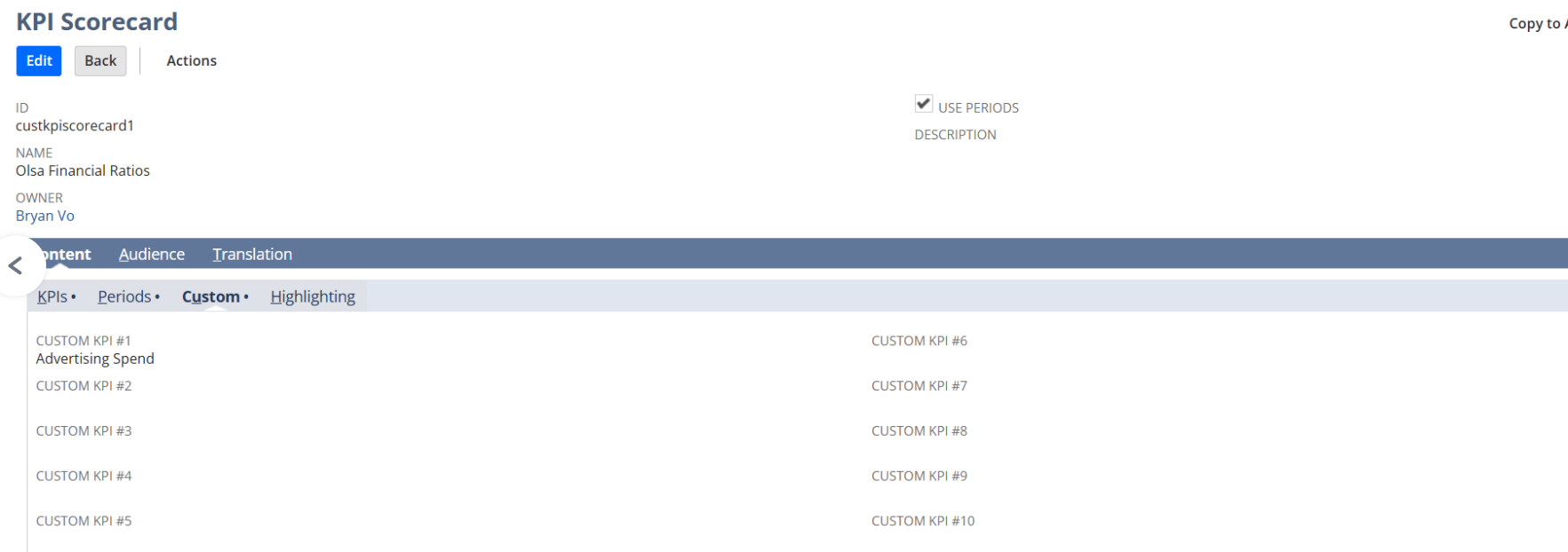 Here, select the Custom KPI #1