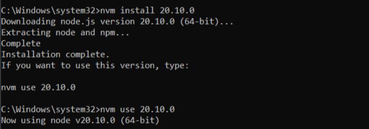 This will reinstall Node JS correctly. After installation, run the command : nvm use 20.10.0.