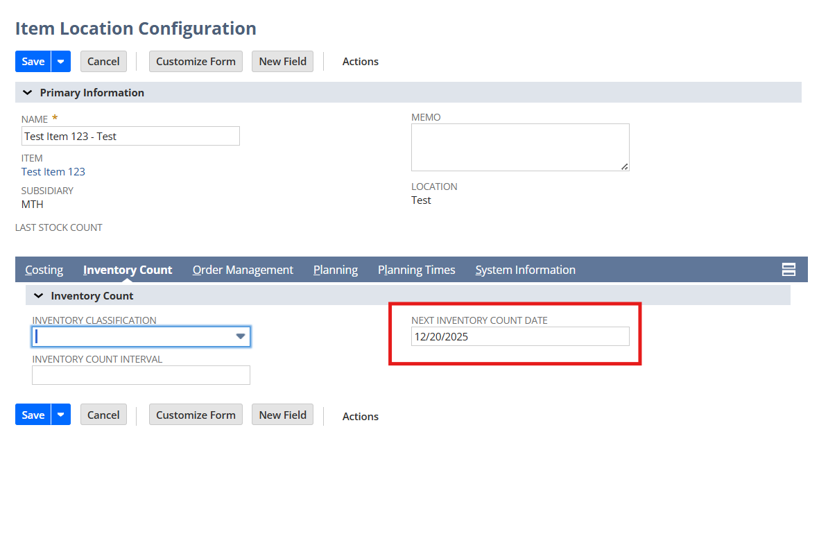 If items still do not appear in the Inventory Count list, check the Next Inventory Count Date for the location.