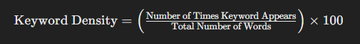 Keyword density refers to the percentage of times a keyword or keyphrase appears in a piece of content relative to the total number of words. It’s calculated using the formula: