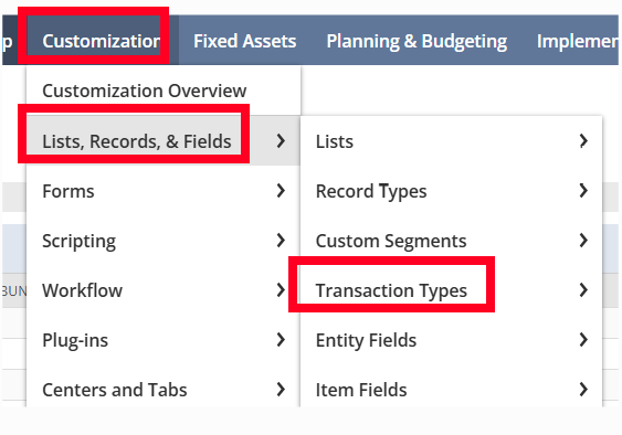 Go to customization> List, Records, & fields> transaction types