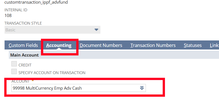 - Select the account we found in the custom transaction record