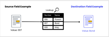 This pulls information from another location (such as a table) to determine the value that flows into the destination field.