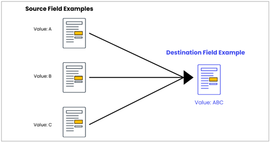 This type of mapping allows you to combine multiple fields into a single destination field.