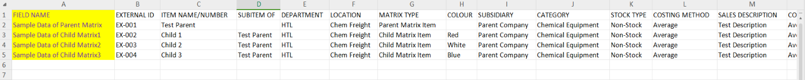 - Matrix Type: Possible values for this column are Parent Matrix Item, Child Matrix Item.