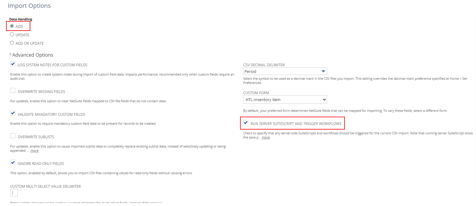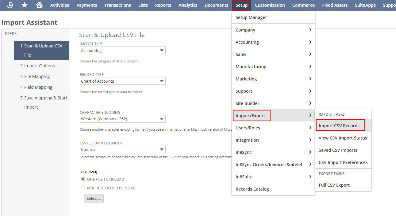 After Preparing the CSV file we need to import the data into the the NetSuite.