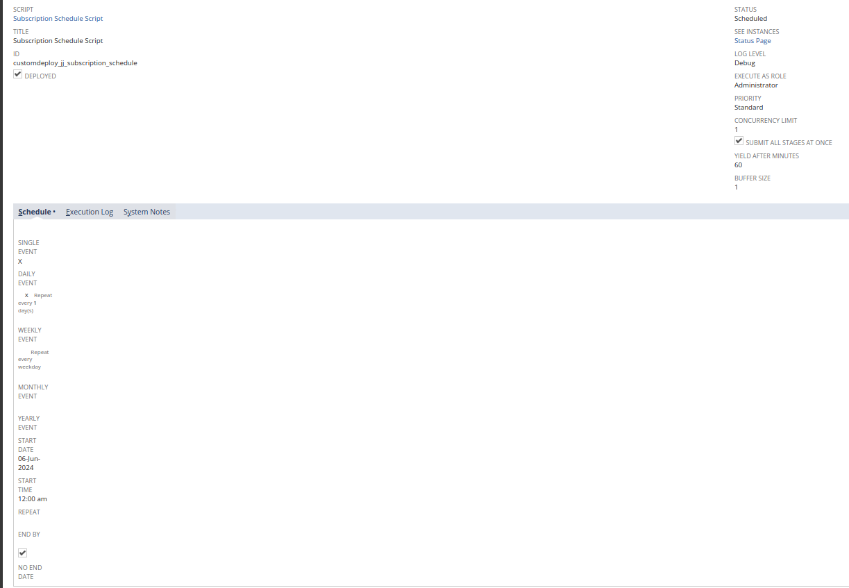log.debug('Subscription Initialized', 'Record ID: ' + recordId);