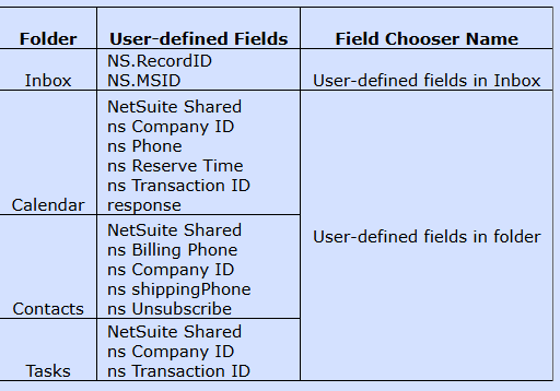 The table below indicates the column fields that can be added in Outlook to identify which records are synced.