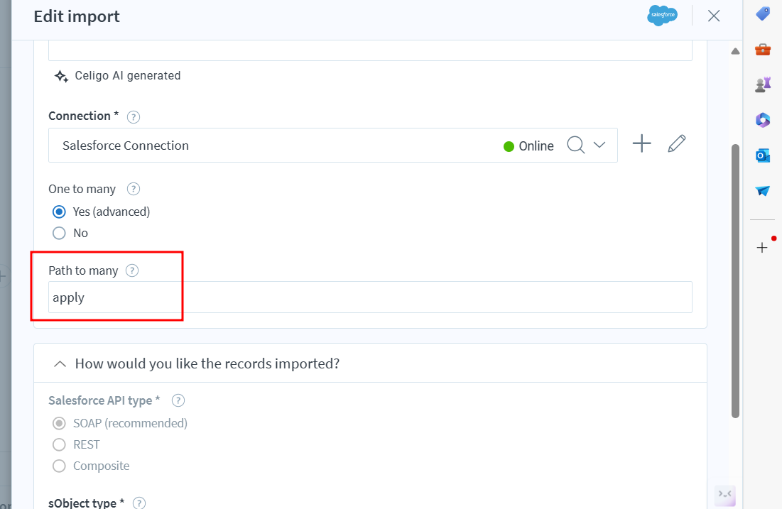 In Import use type as Invoice. and give the saved search id to filter the payments from NetSuite.