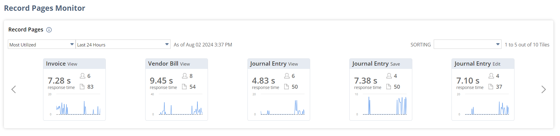 Record Pages Monitor lets you monitor the performance of your record pages. Visual indicators alert you to performance issues and anomalies, which you can investigate by using portlets and quick links.