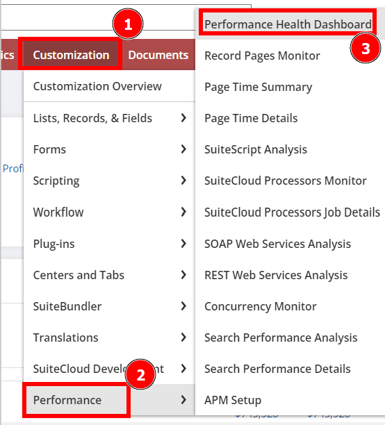 Navigate to Customization -> Performance -> Performance Health Dashboard.