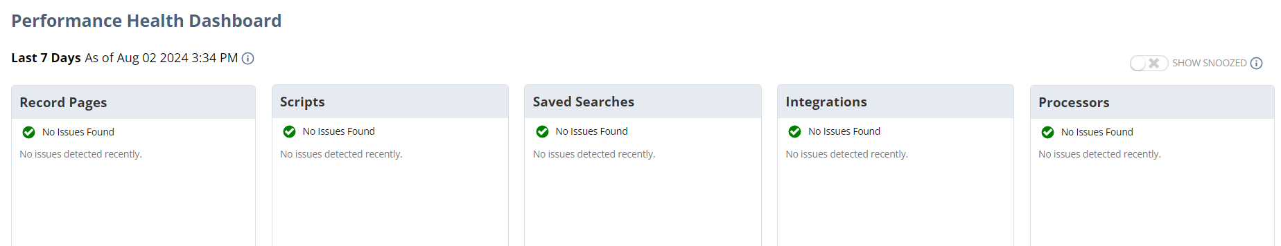 The dashboard displays issues related to the following processes in NetSuite.