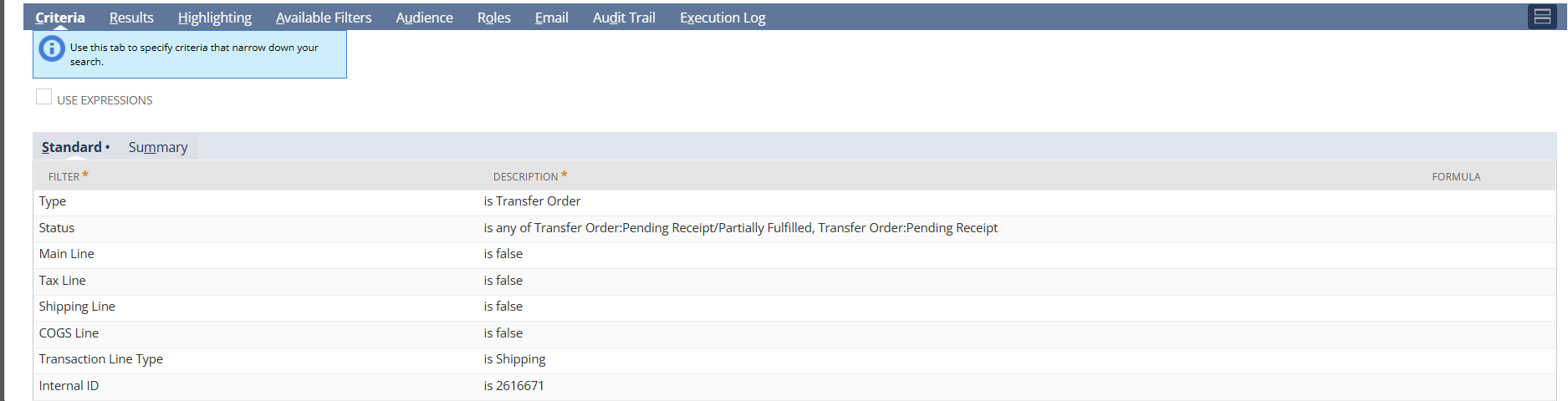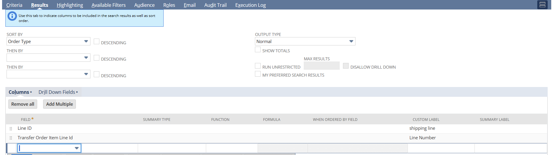 Obtaining the Shipping Line for Transfer Orders Through a Saved Search.