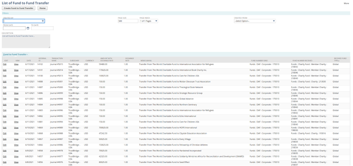 List screen of Fund to Fund transfer lists all journal entries created from the fund to fund transfer. Each journal is treated as the individual fund to fund transactions.