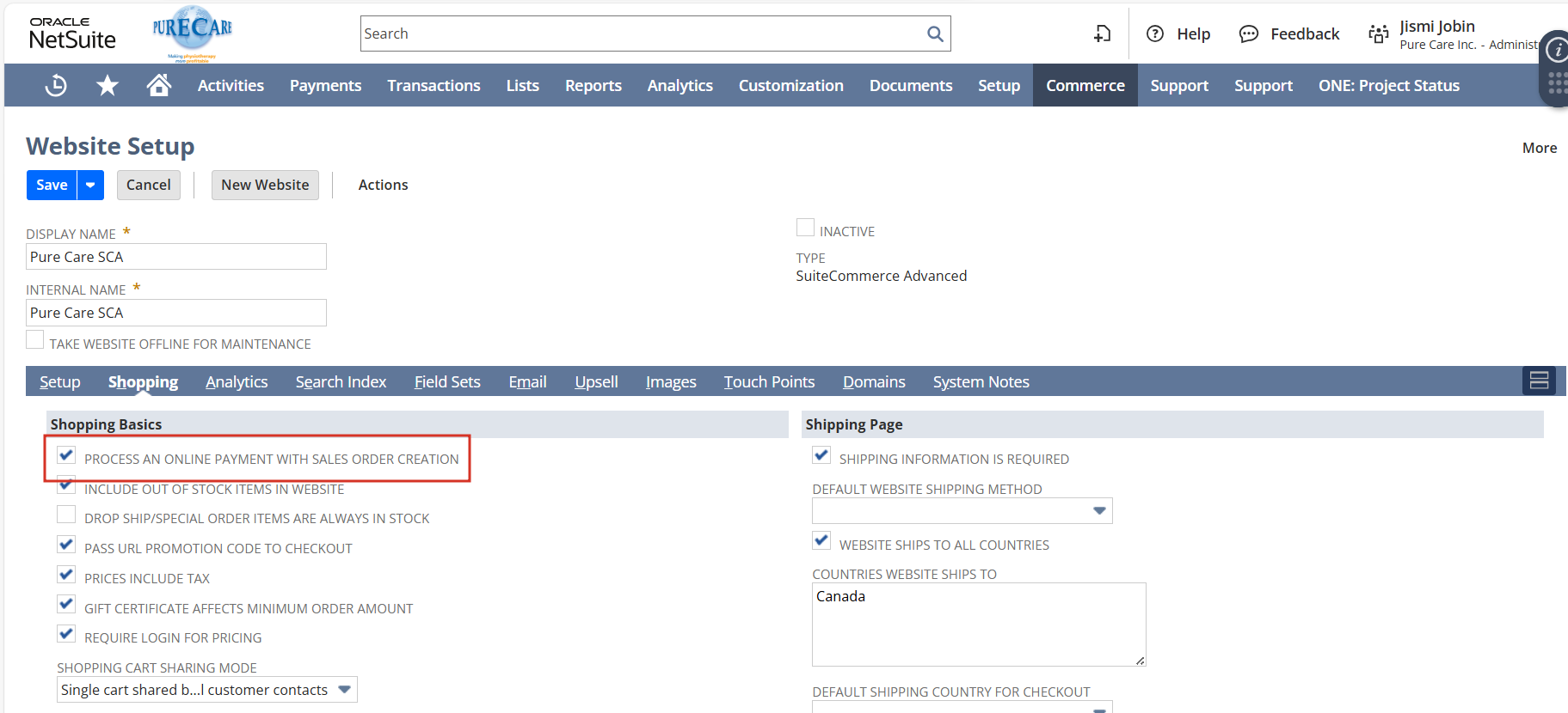 Solution: To authorize the payment from webstore we have to enable the feature in website setup