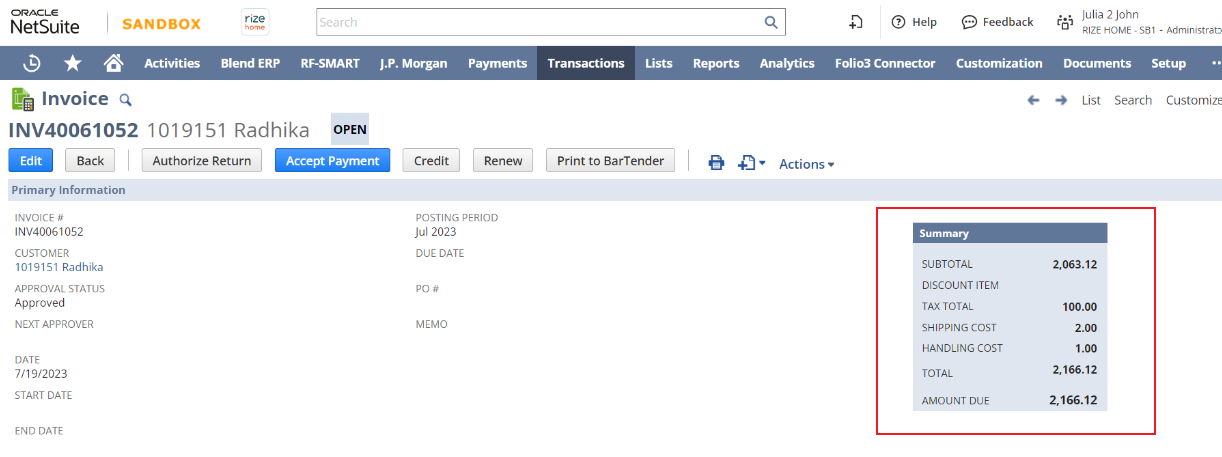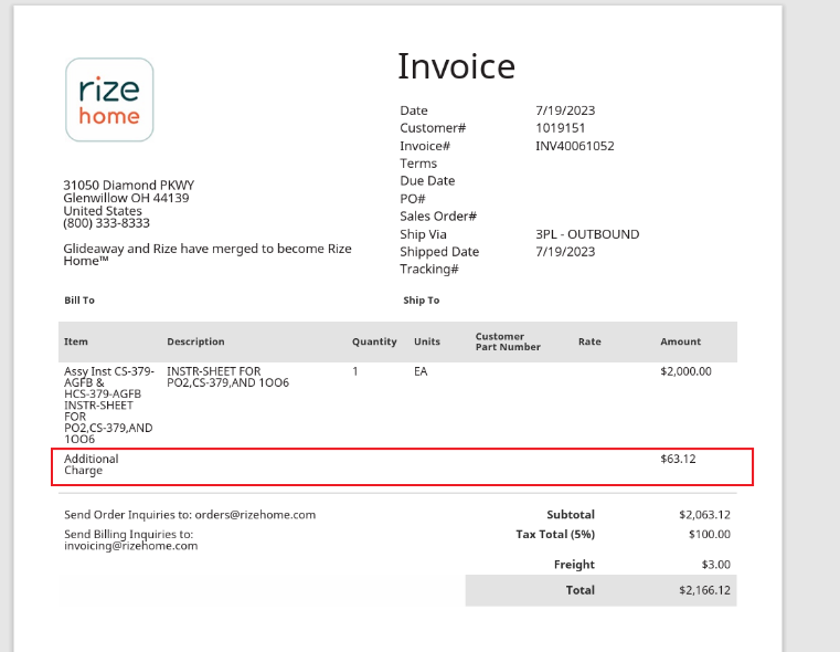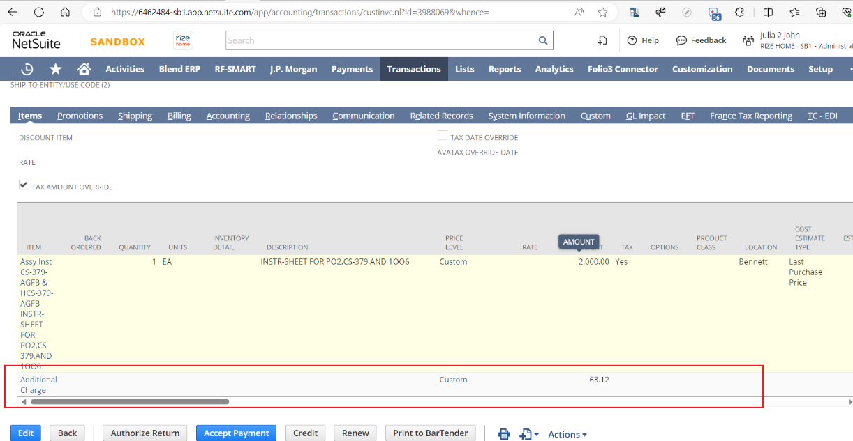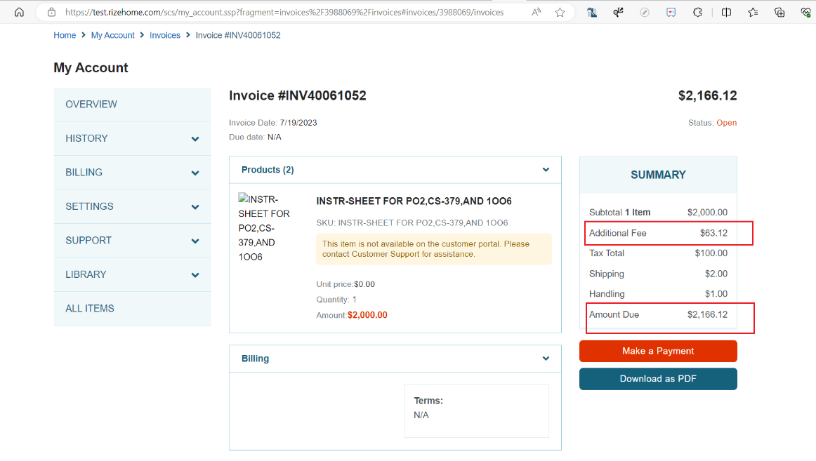 • When the customer does the payment of invoice, the additional charge will be included in the amount due