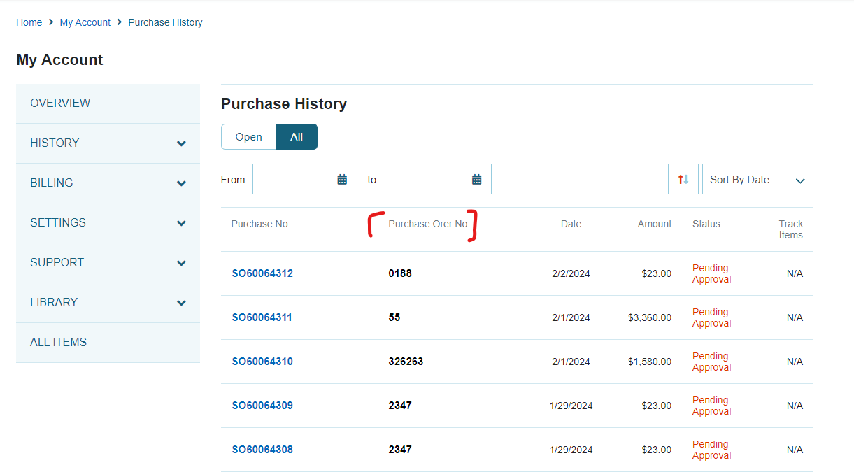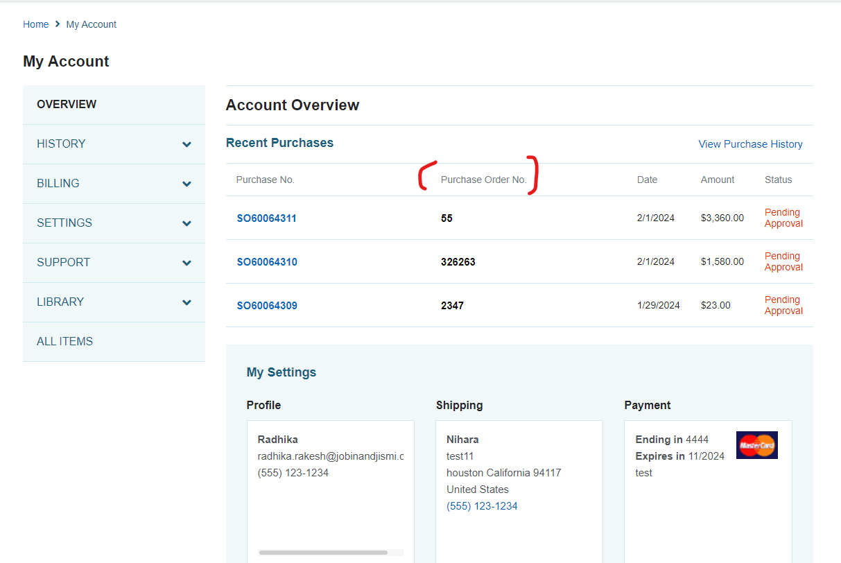 - We can introduce a new column in the webstore’s purchase history section and recent purchases section named ‘Purchase Order Number:’