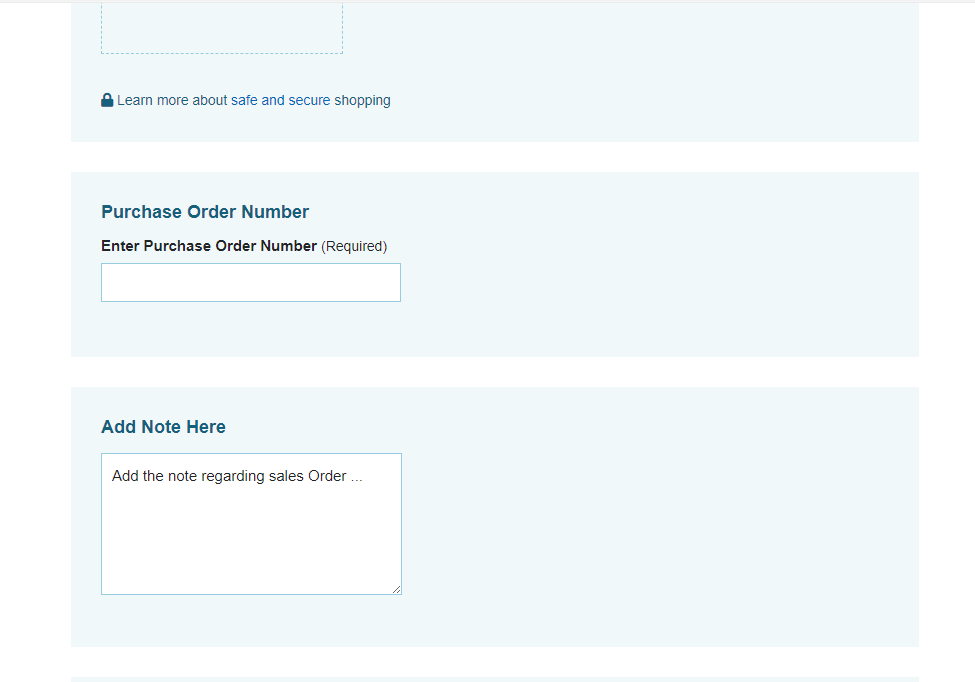 Adding PO# field in the Purchase history section and notes in the checkout.