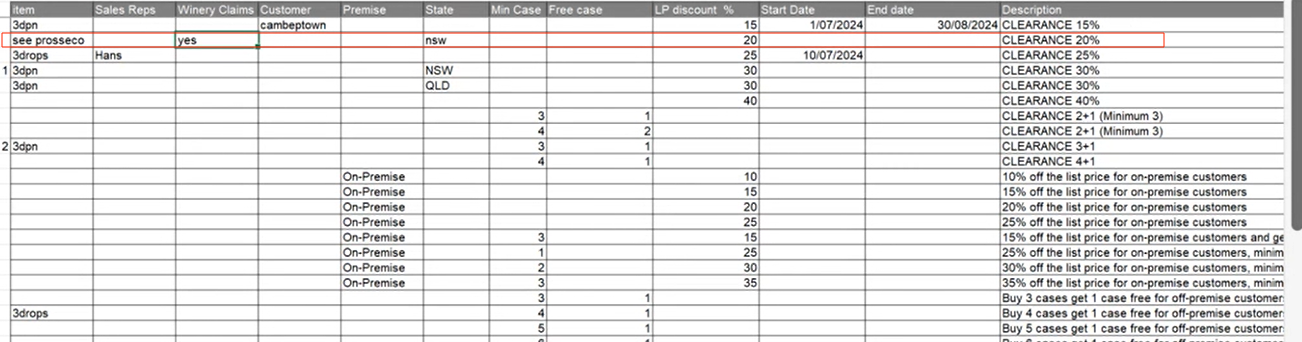 If the “Promotions” custom record indicates a winery claim as “Yes” and the item has a discount lower than the actual promotion listed in the custom record, the company is eligible to claim the discount. In these instances, a custom record “Winery claim” should be generated with the details and attached to the sales order.