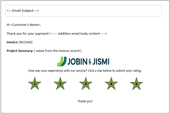 When an Invoice is marked as fully paid, a custom record will be automatically created with the status set to “Email Not Initiated” and pre-filled with relevant details. Simultaneously, a feedback email will be sent to the customer.