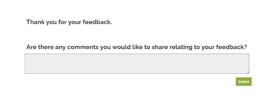 After the user enters their feedback comments and clicks the submit button, the thank you page will appear. If there is any error while storing the response in NetSuite, an error message will be displayed instead.