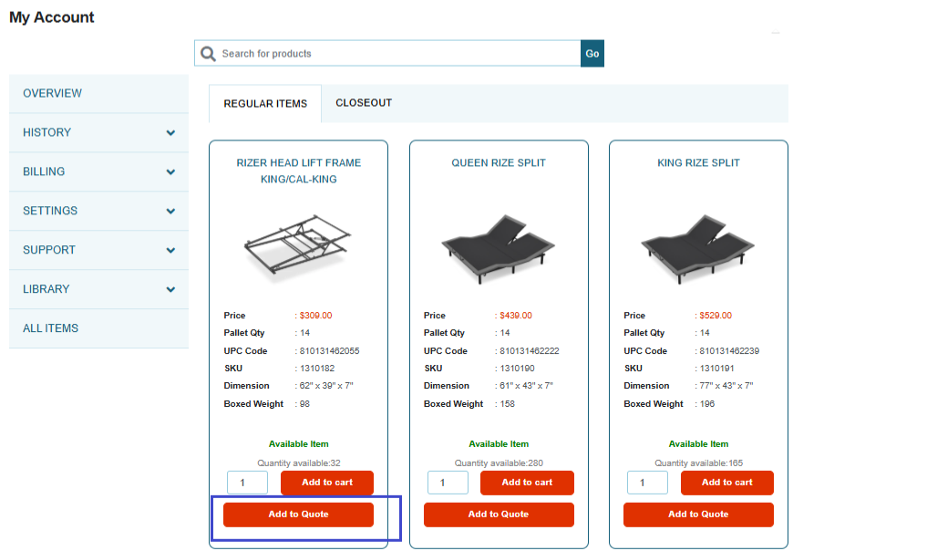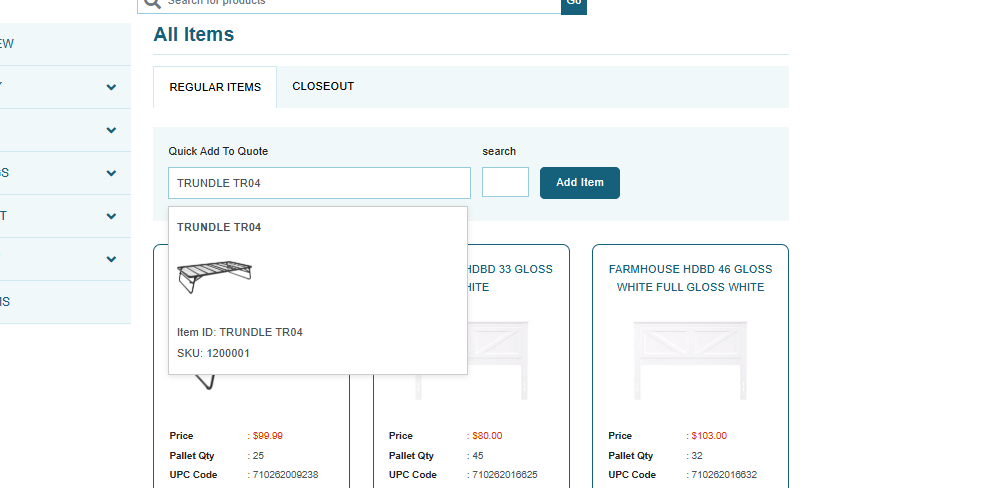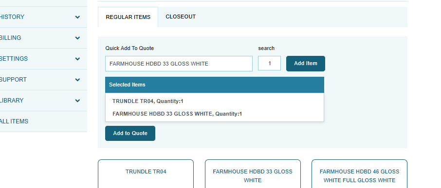 - A quote with multiple items cannot be created using the Add to Quote button for each item individually. Instead, it is necessary to use the Quick Add to Quote section.