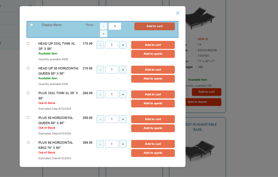 - The “Add to Quote” button will be available separately for each child item, alongside the “Add to Cart” button. There will not be a common “Add to Quote” button to create a quote for all child items together.