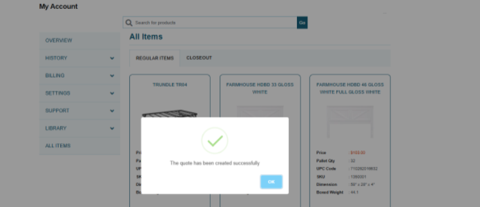 - Once the quote is successfully created, a confirmation message will be displayed on the web store. If the quote creation fails, an error message will be shown to the user with relevant details.