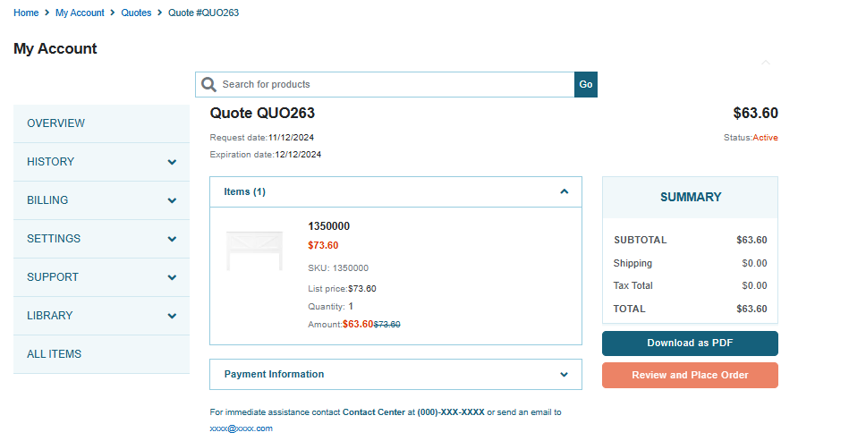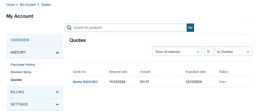 - The newly created quote will be listed under the “Quotes” page in the “My Account” section.