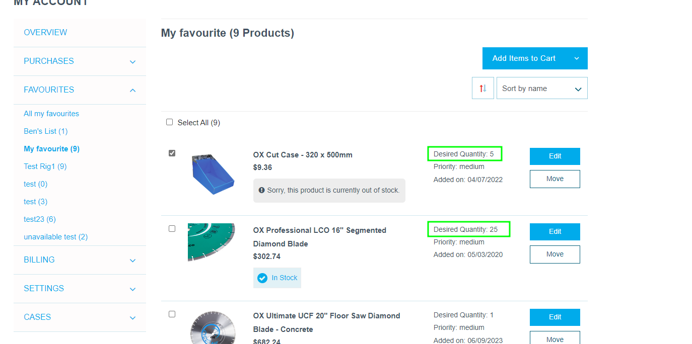 - We need to customize the quantity field in the Reorder page and Favourites in my account section.
