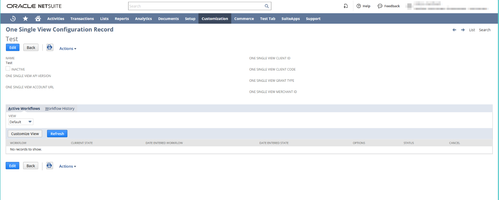 1. Custom Record: “One Single View Configuration Record” in NetSuite