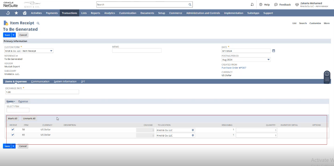 - Item Receipt Customization: The implementer will enhance the item receipt record in NetSuite by adding line level fields like that of sales order and Purchase Orders. The customization will ensure that all necessary details are displayed on the Item Receipt, maintaining consistency across different types of transaction records. This enhancement will provide the client with a comprehensive view of each item as it is received, enabling better tracking and verification.