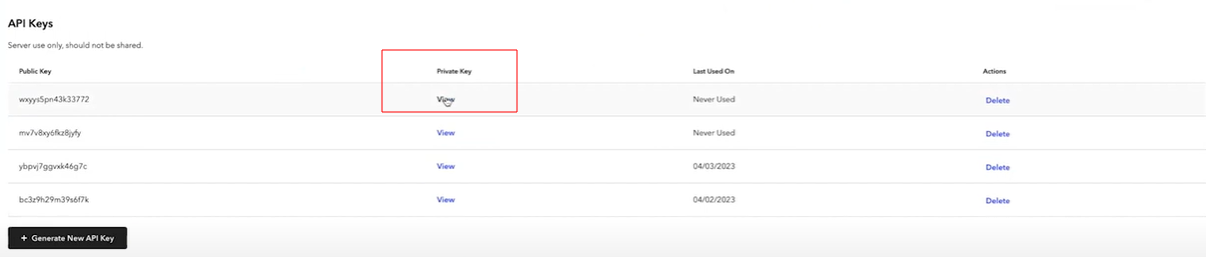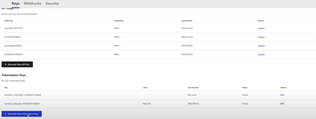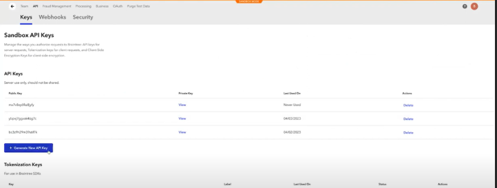 - Go back to the same page where API keys were generated. Click on generate new tokenization key and copy the newly generated key.