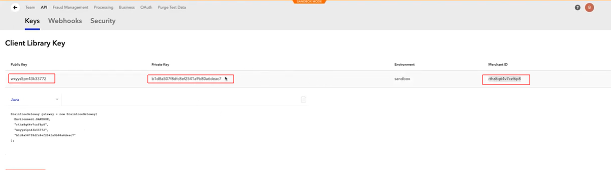 - If the implementation needs to be done on our test account first, it will require additional work. For this the client needs to create a sandbox account in PayPal Braintree and provide the public, private, and tokenization keys, as well as the merchant ID.