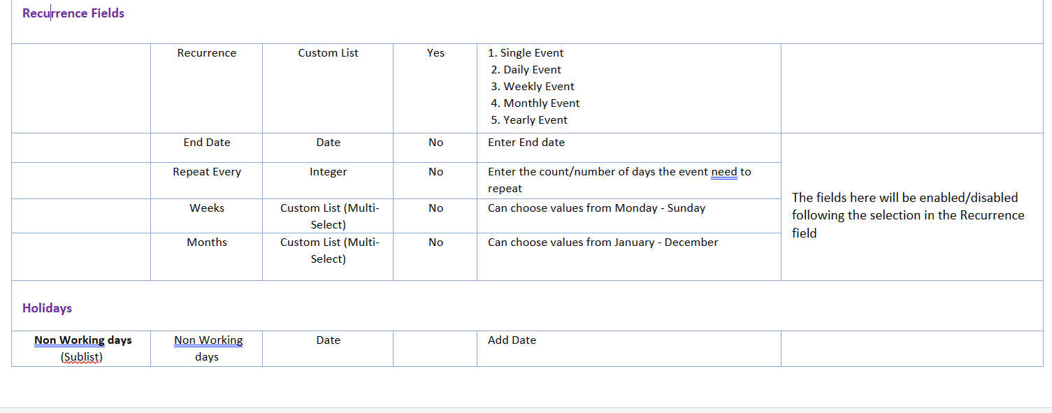 It will work more or less with the same logic of Calander Events with extended functionality of adding Holidays.