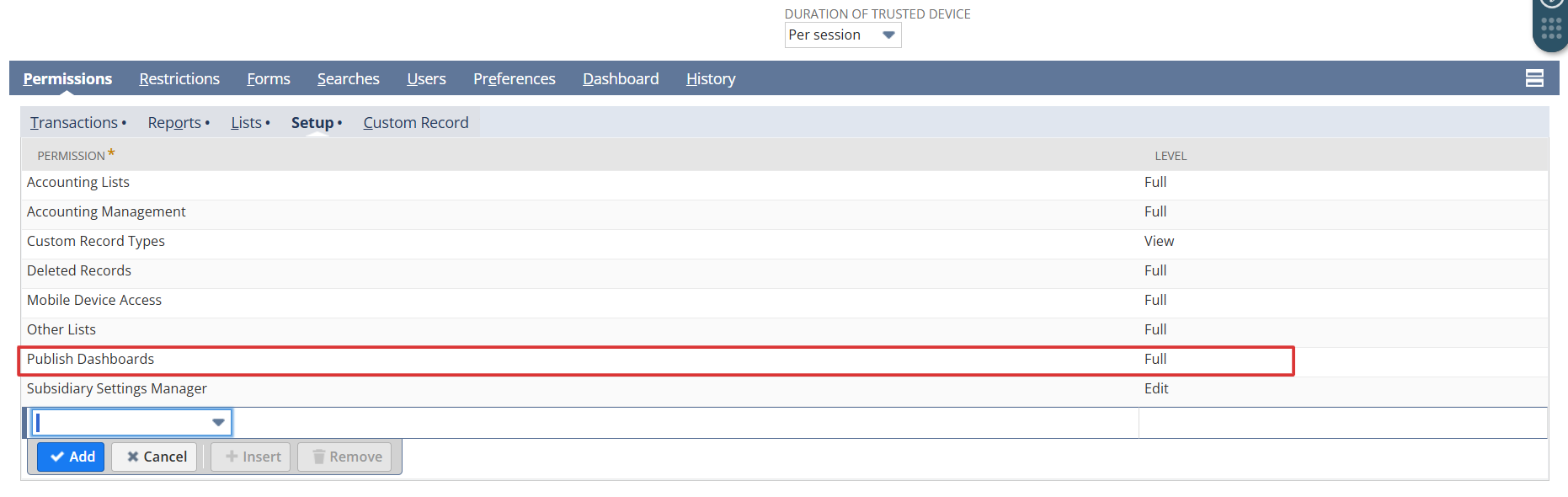 First, we need to provide “Publish Dashboard” permission for that role.