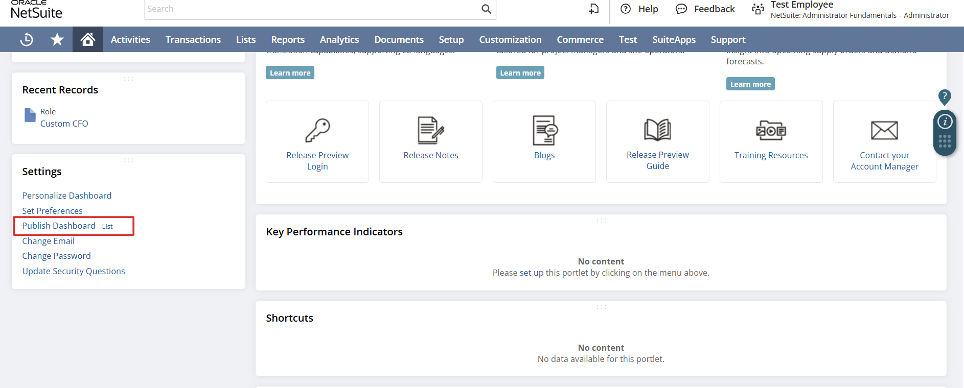 Now this dashboard will be visible to the users logged in to the account using this specific role.