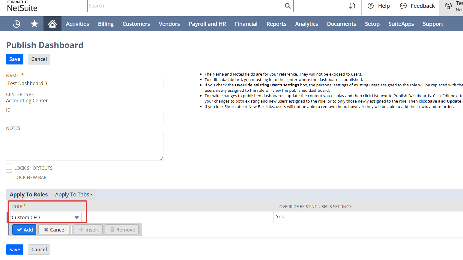 Select the Role to which this dashboard is applied from the list.