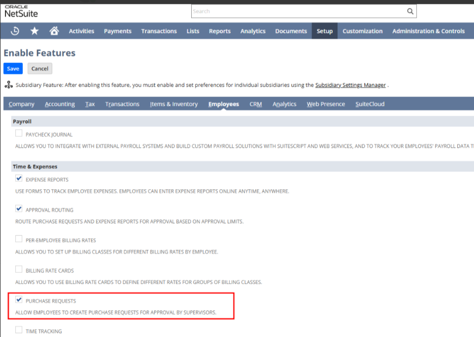 In OneWorld accounts, subsidiary restrictions are not enforced to filter time and expense report records that users with this role can see. Subsidiary restrictions are enforced to filter the records that users with this role can see, except for times reports, purchase orders, and expense reports. Subsidiary restrictions for the role are checked first, then subsidiary restrictions for the individual users.