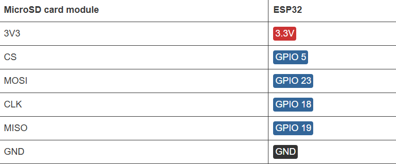 #define SD_CS 5 // Chip Select pin (ESP32 uses GPIO 5)