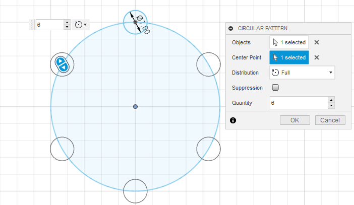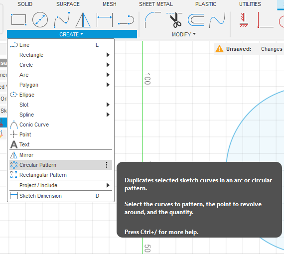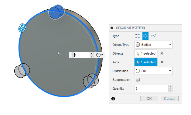 • Circular pattern is used to make duplicates of the selected profile as a circular pattern for along the selected curve
