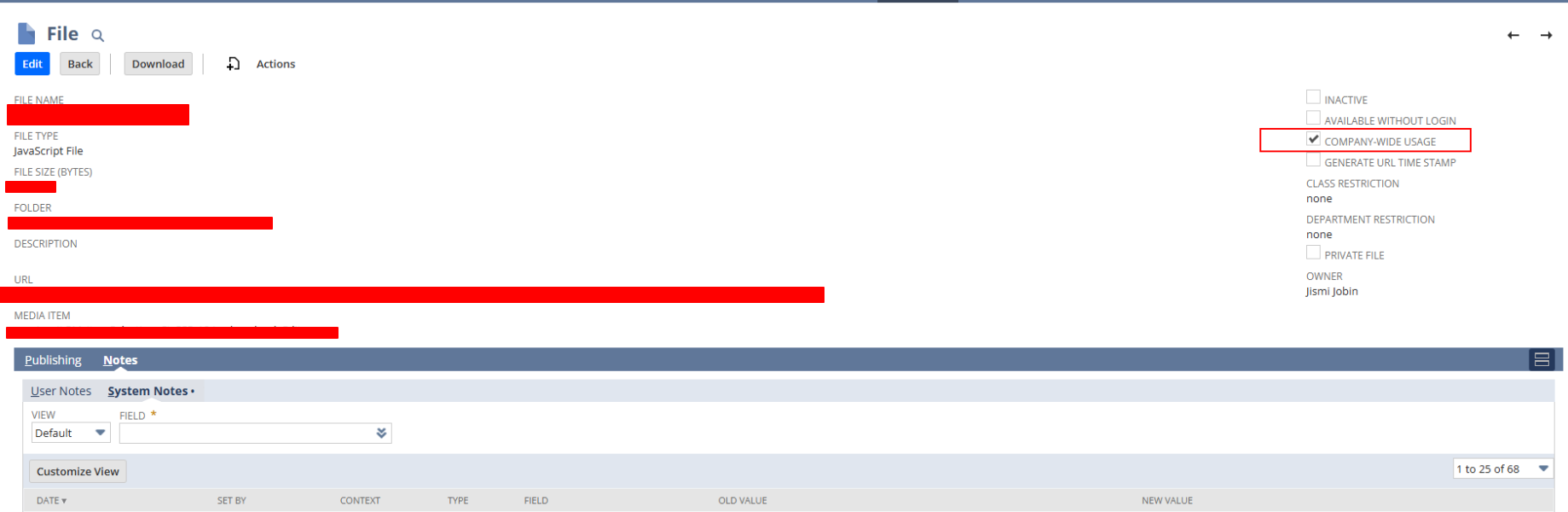 - After selecting the “Company-Wide Usage” checkbox, save the client script record.