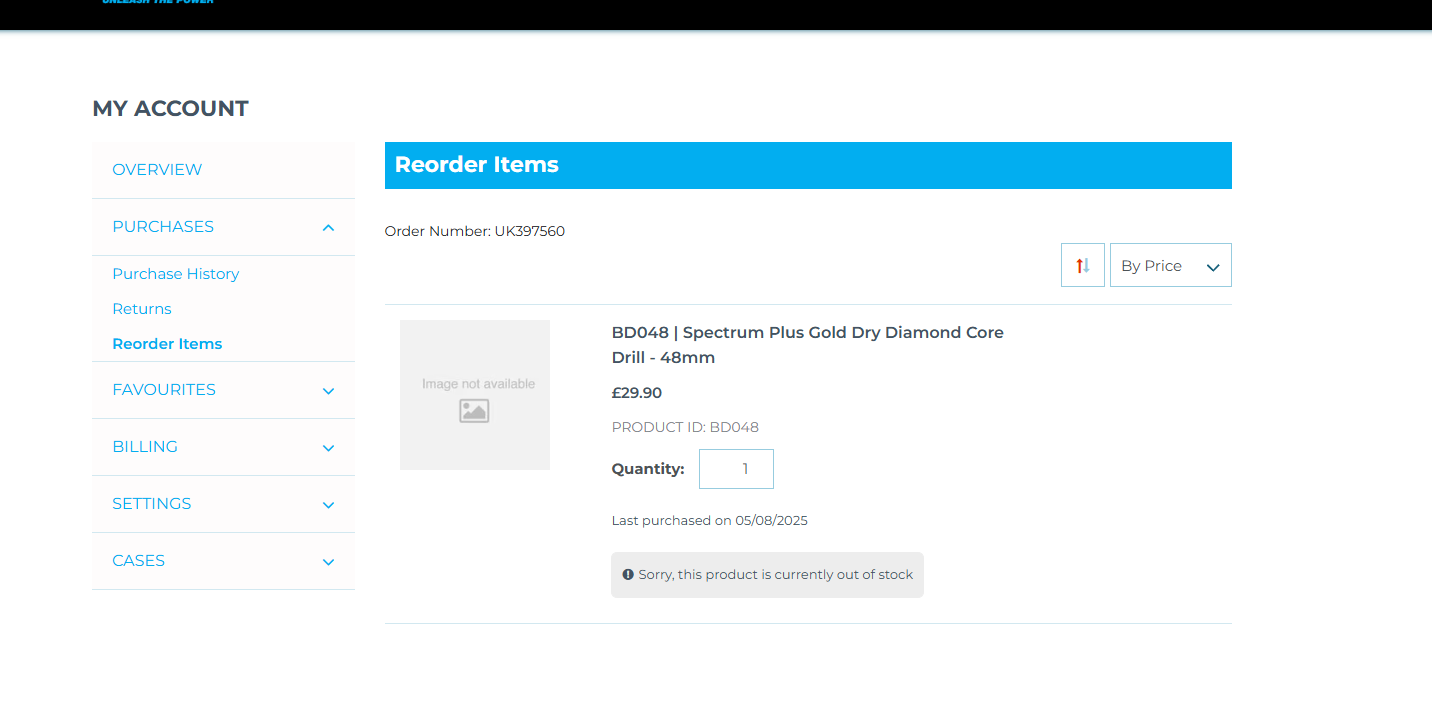 In SuiteCommerce Advanced (SCA) version 2024.1.0, the “Reorder Items” list in the My Account section may appear empty, even though the customer has placed previous orders.