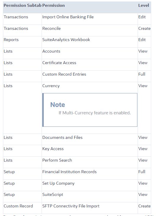 To configure a format profile record that uses an SFTP connection and to successfully import transactions using custom roles, you must set the following permissions: